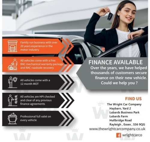 Do you require car finance to purchase your new car ? Good or adverse credit history? No problem! We will aim to get you the best rate on the market. Apply online or contact us on 01268761999. Same day drive away available.